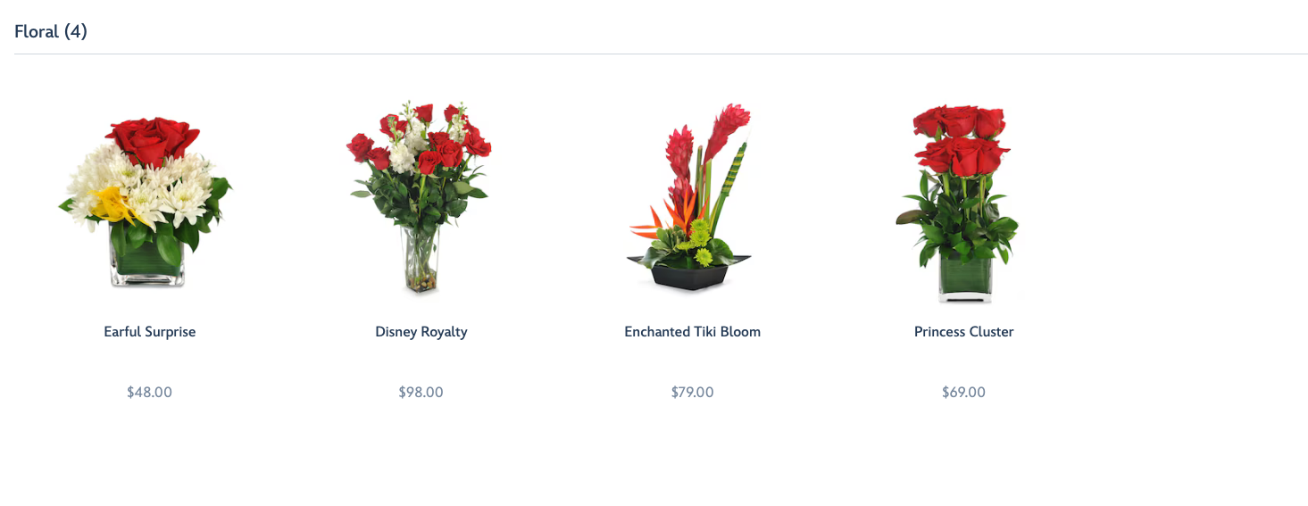 한정판 디즈니 상품을 객실에서 바로 만나보세요. - 꽃다발, 샴페인 세트, 스낵 바스켓 등 다양한 옵션!